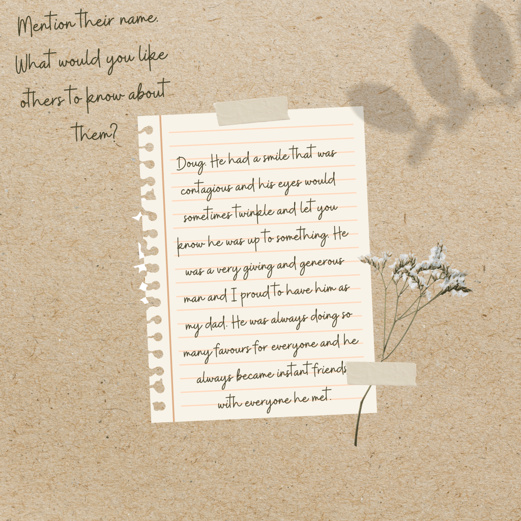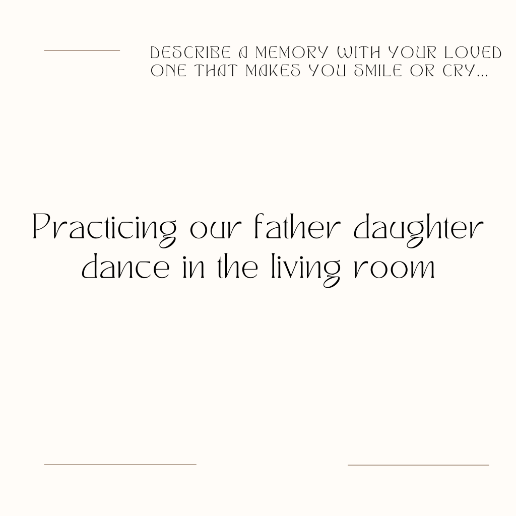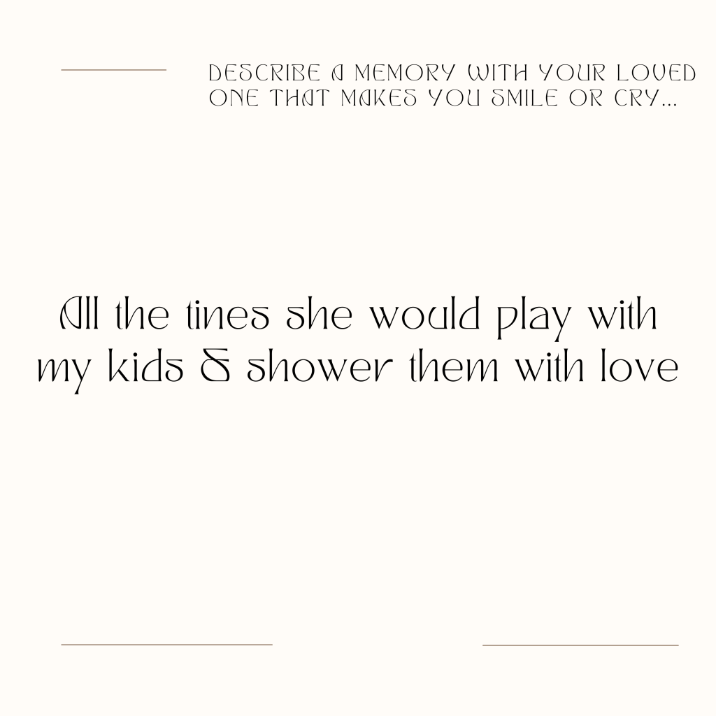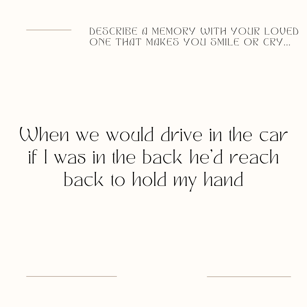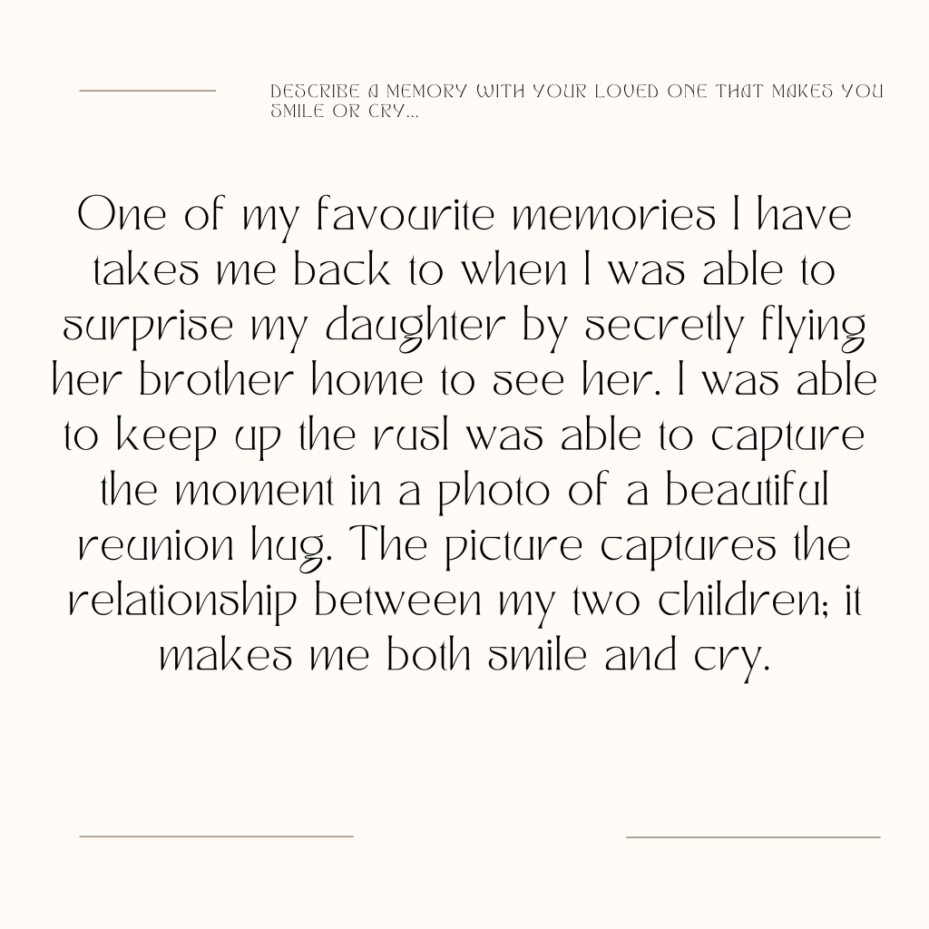 Describe a memory with your loved one that makes you smile or cry…