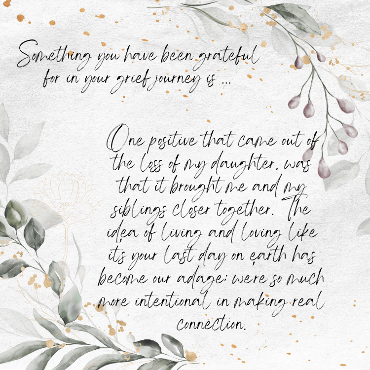Something you have been grateful for in your grief journey is …